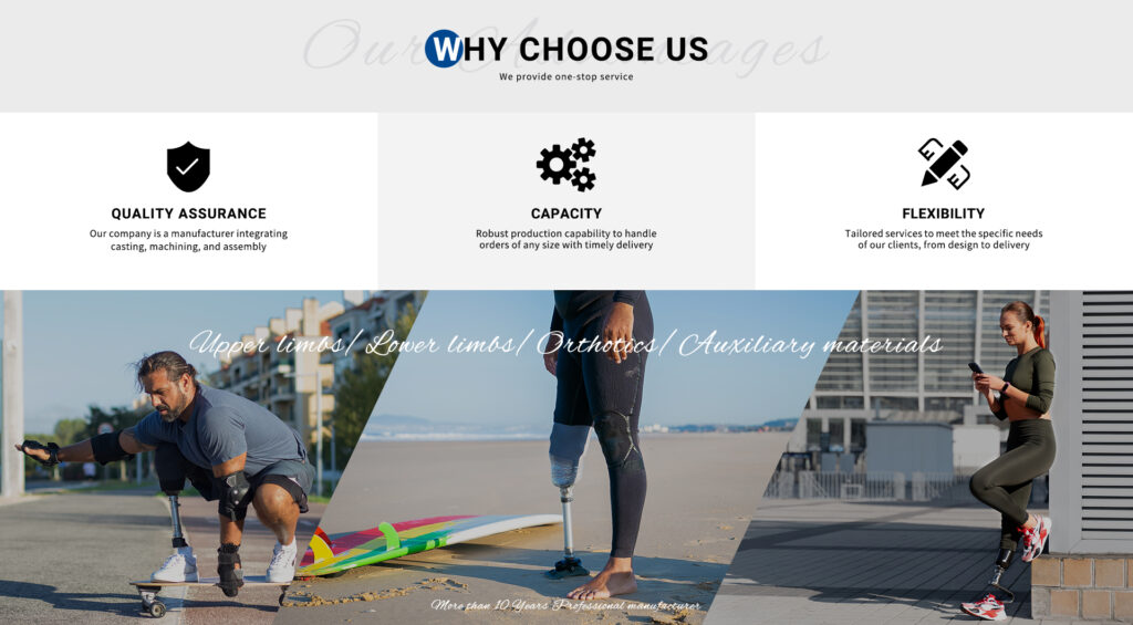 Tailored prosthetic limbs designed using precise casting and CNC machining to ensure a perfect fit and natural movement.